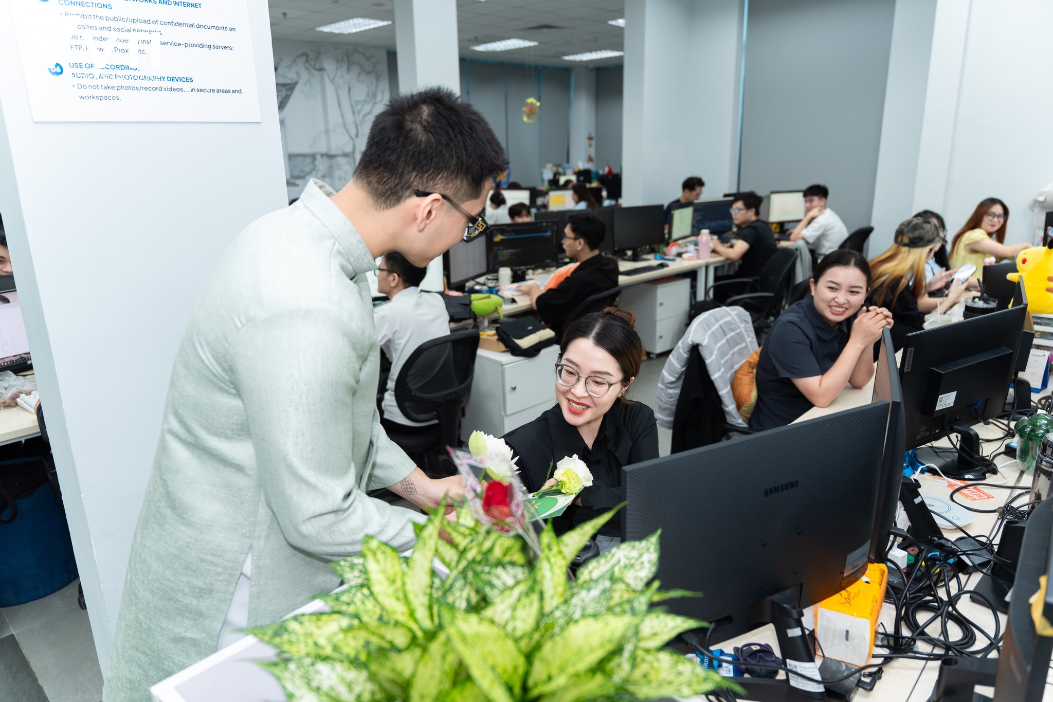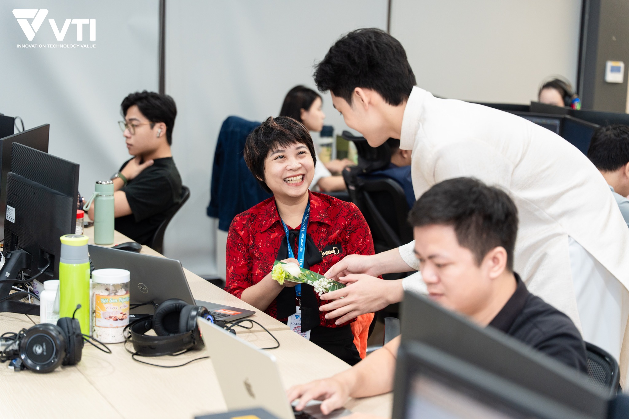 Chưa dừng lại ở workshop đó, VTI đã có những “đóa sen” nam điển trai sẽ hóa thân thành sứ giả yêu thương, mang những món quà xinh xắn cùng lời chúc chân thành đến từng chị em để ngày 20/10 trở nên thật đặc biệt hơn nữa.