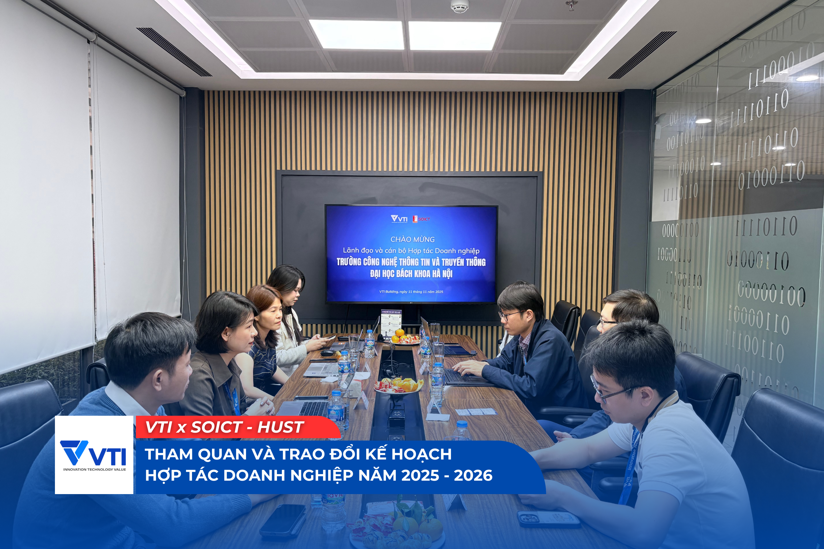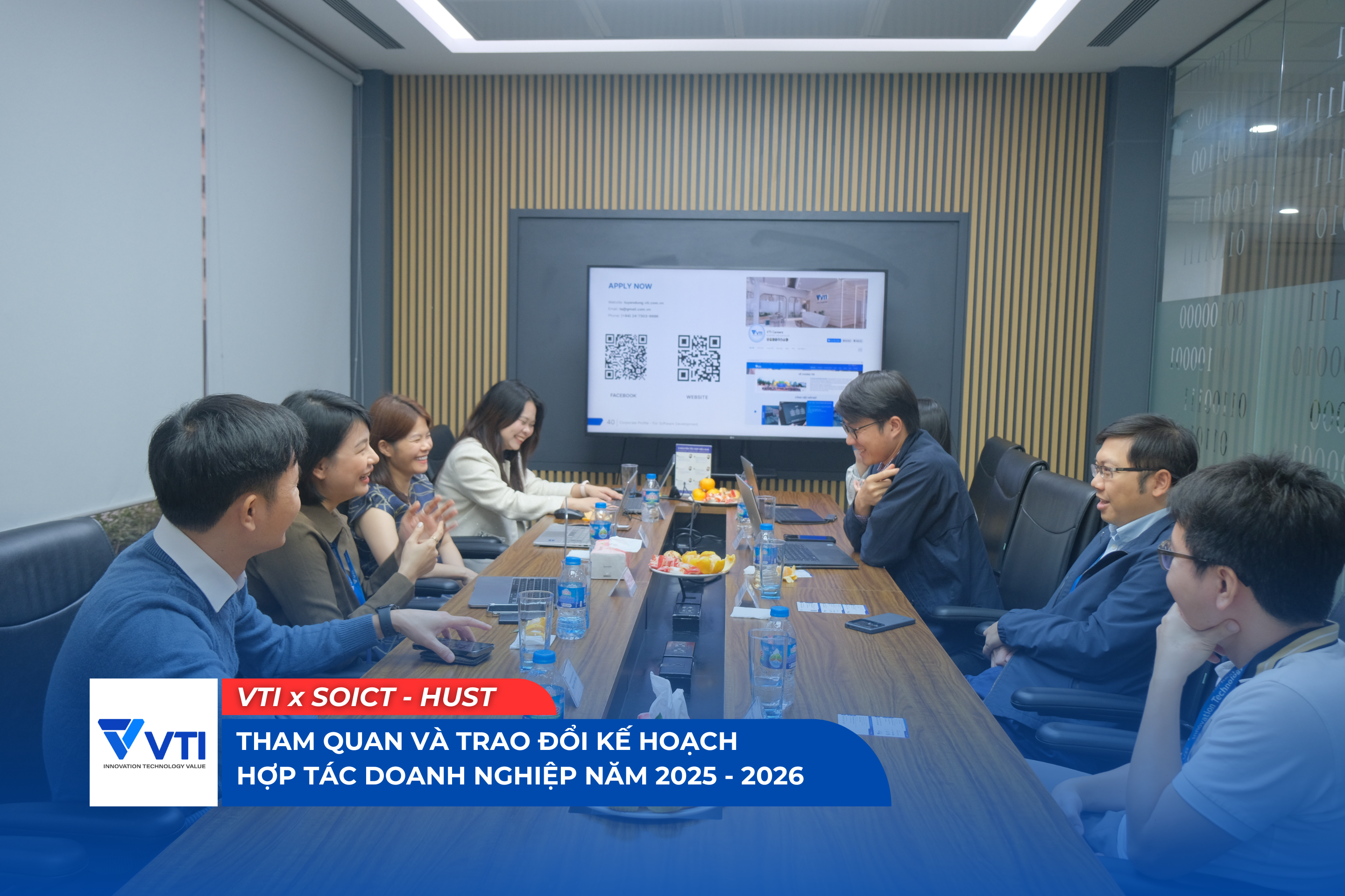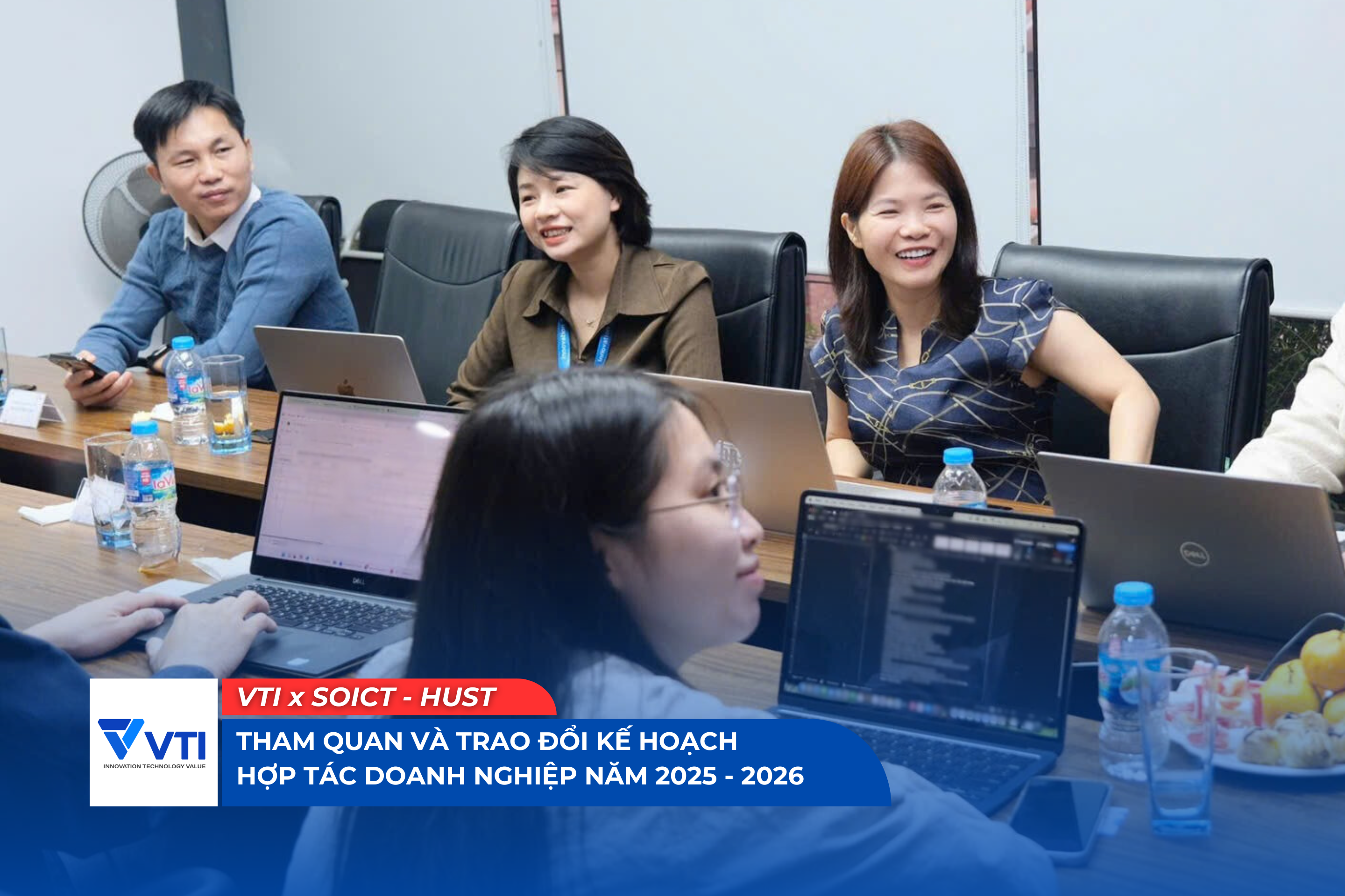 Ngày 11/11/2025, tại trụ sở Công ty Cổ phần VTI. Đã diễn ra buổi gặp gỡ, tham quan và trao đổi kế hoạch hợp tác doanh nghiệp năm 2025 - 2026 giữa Trường Công nghệ Thông tin và Truyền thông - Đại học Bách Khoa Hà Nội và Công ty Cổ phần VTI.