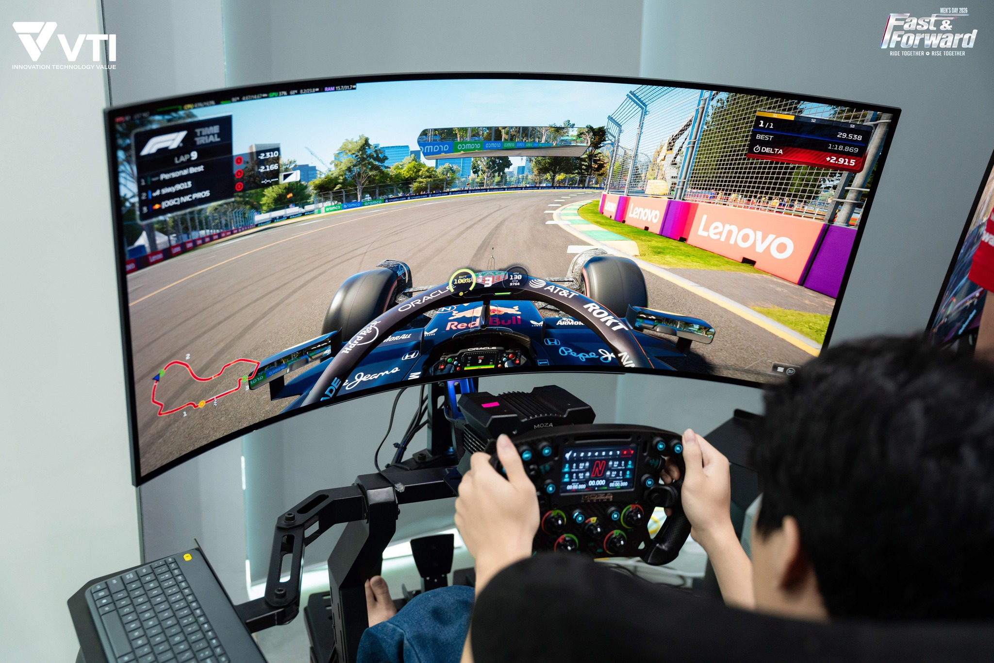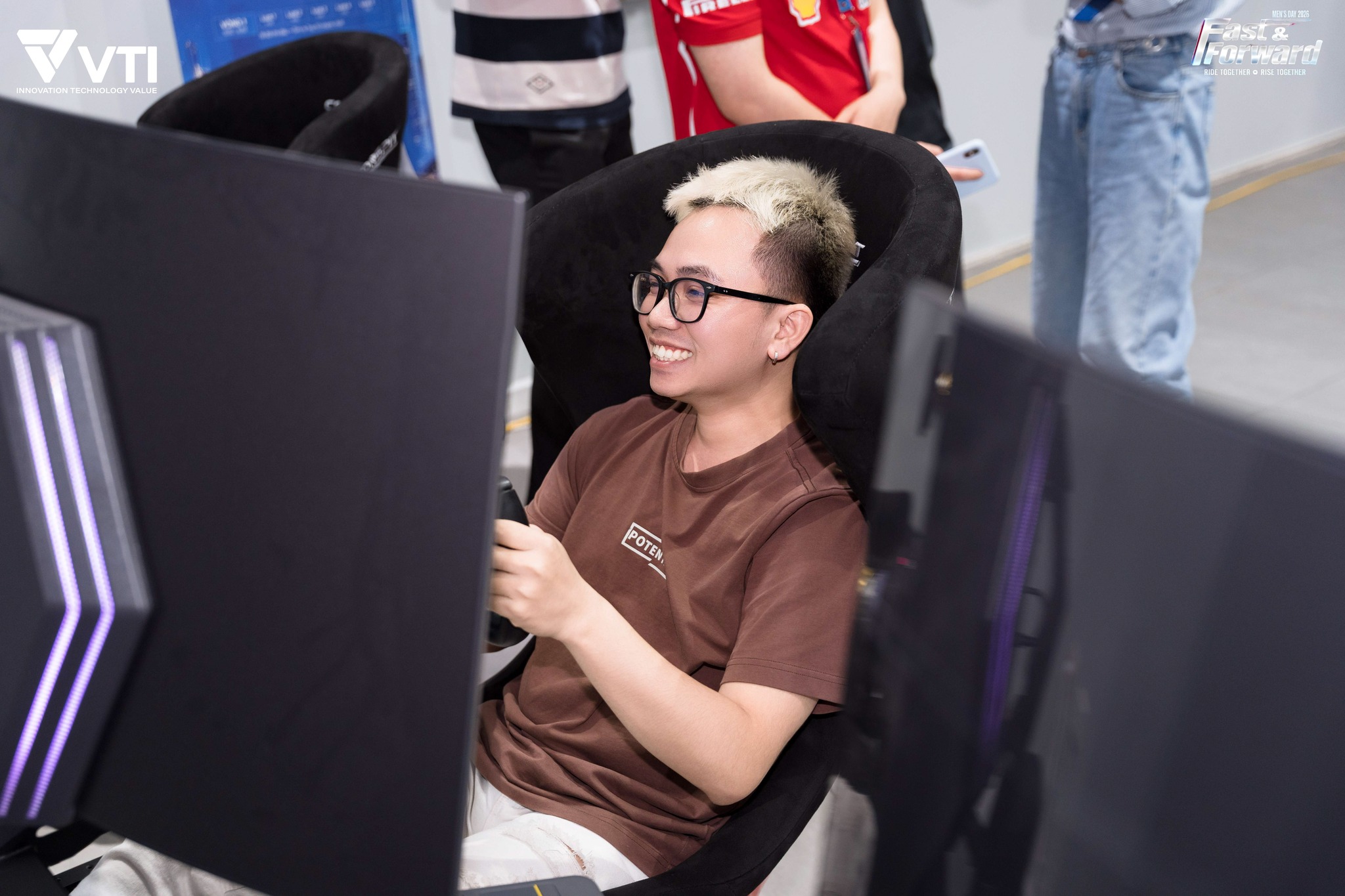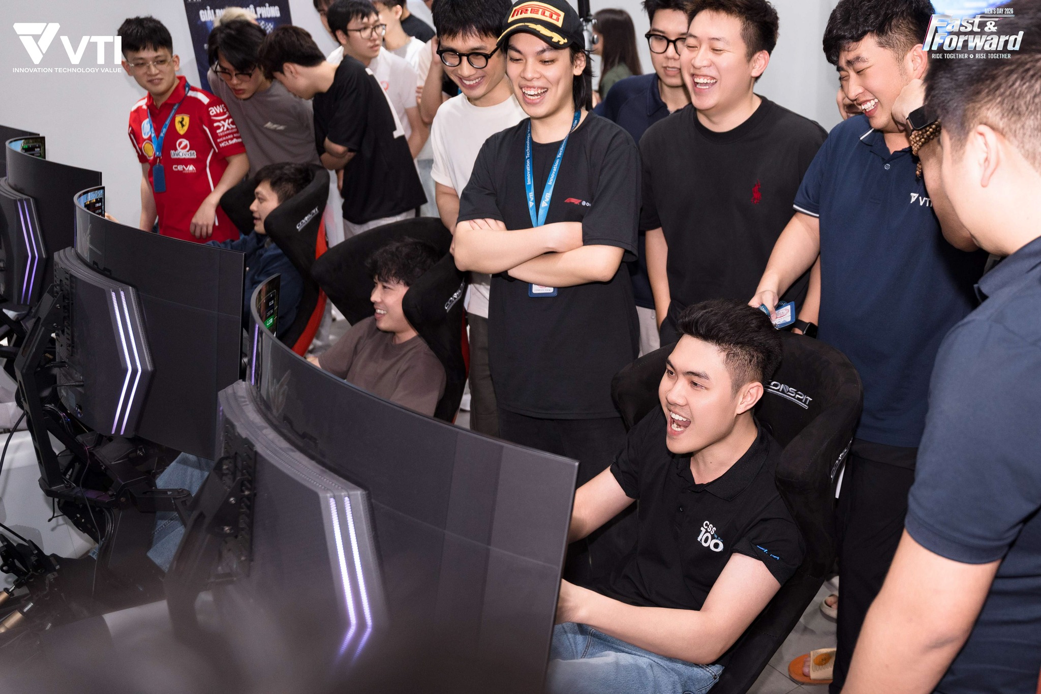 Không chỉ dừng lại ở việc theo dõi, các thành viên VTI còn được trực tiếp tham gia trải nghiệm đua xe, thử sức với tốc độ và phản xạ trong một không gian đầy hứng khởi. Khu vực trải nghiệm liên tục thu hút đông đảo người tham gia, tạo nên một điểm nhấn sôi động xuyên suốt chương trình.